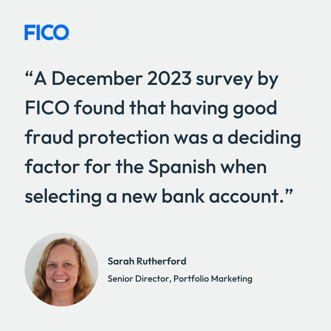 Regardless of the type of fraud banks face, they share one crucial element – the customer. Whether it’s through education, better processes or improved interactions, putting customers at the heart of fraud prevention is vital – and it matters to them. A December 2023 survey by FICO found that having good fraud protection was a deciding factor for the Spanish when selecting a new bank account. 34% said it was their number one consideration and 72% listed it as a top three consideration.