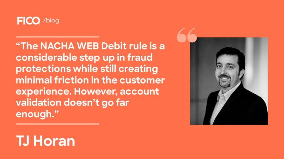 Any of these options will facilitate compliance with the NACHA WEB Debit rule, which is a considerable step up in fraud protections while still creating minimal friction in the customer experience. However, in my mind, account validation doesn’t go far enough in providing fraud protection. A more holistic approach is required. Here’s why.