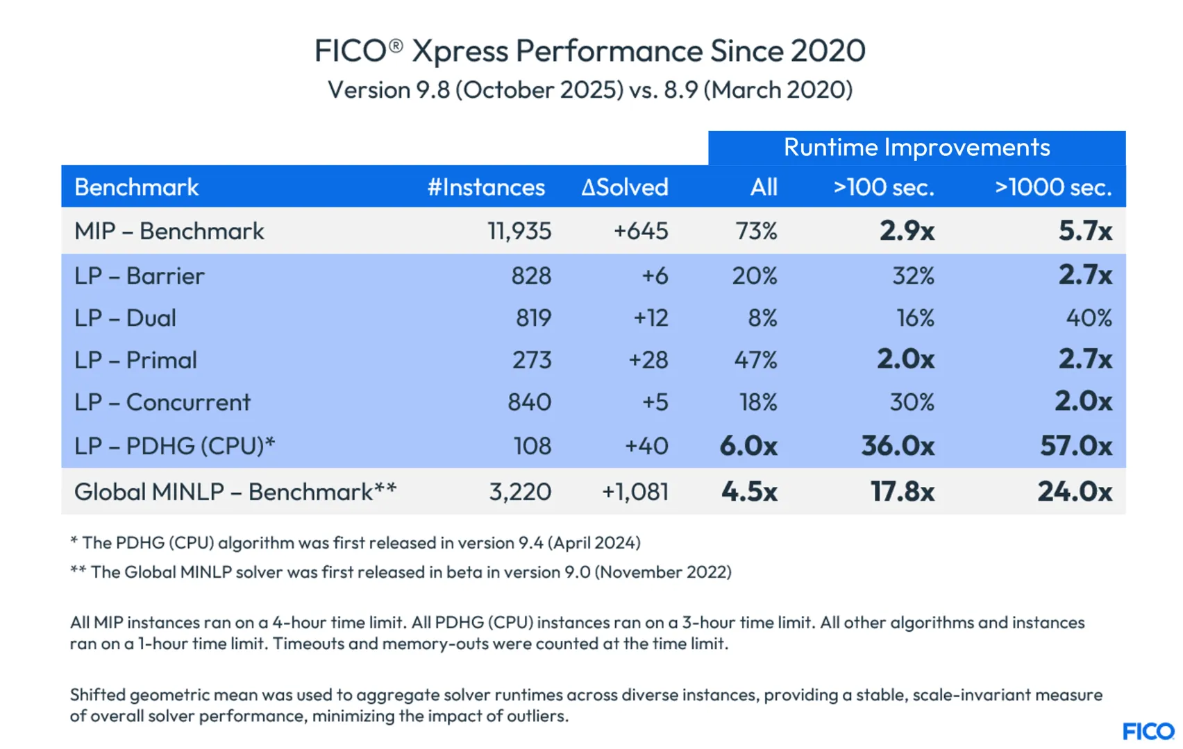 FICO Xpress Optimization continues to push the limit of performance in optimization, delivering acceleration up to 5.7x in its MIP solver since 2020