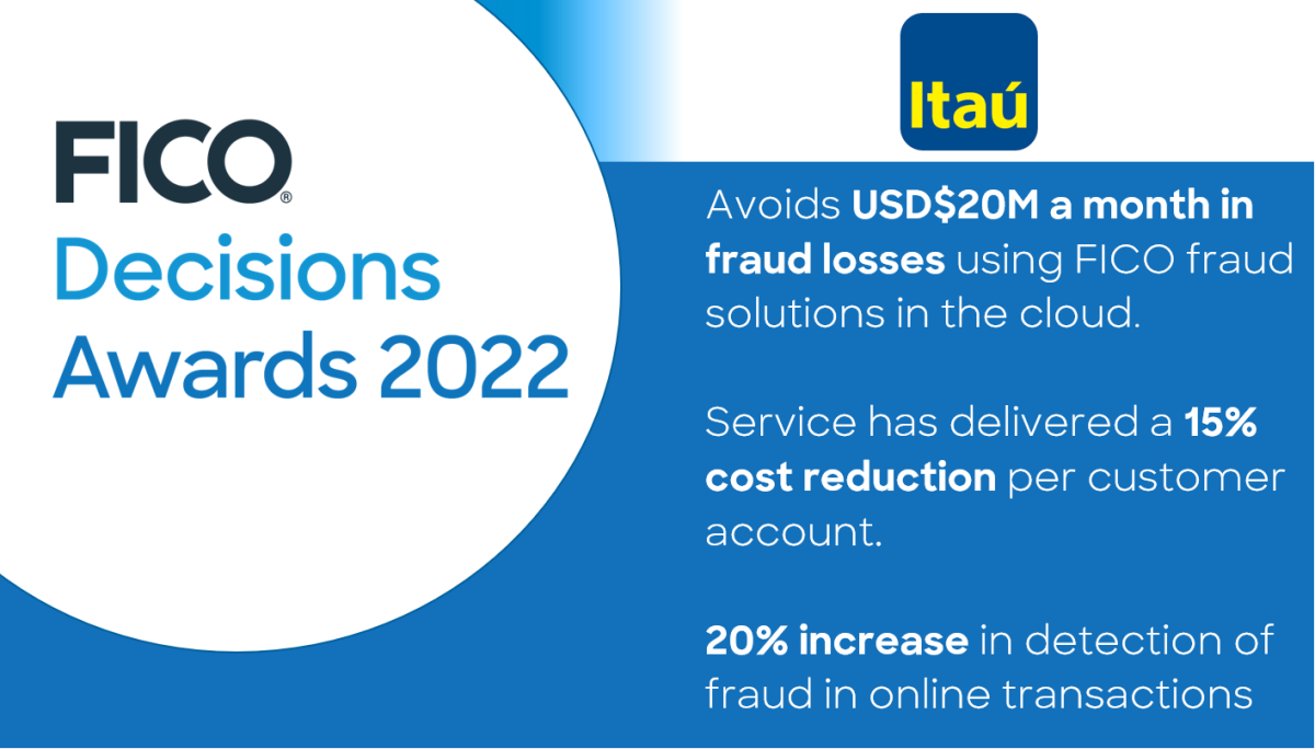 For its achievements, Itaú Unibanco won a 2022 FICO® Decisions Award for cloud deployment.