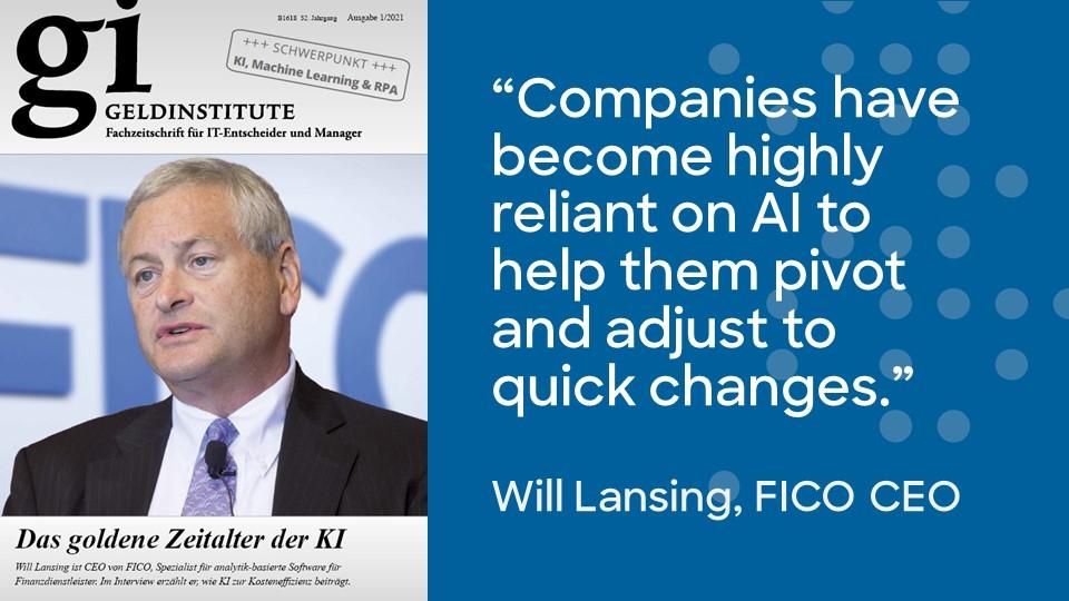 In this exclusive interview from GI Geldinstitute, FICO CEO Will Lansing explains why he believes the pandemic may usher in a golden age of AI