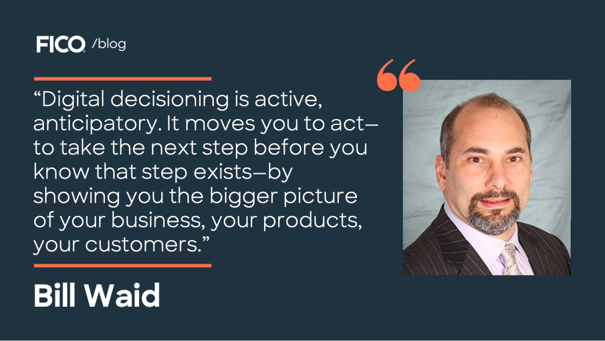 You might have a banking app on your phone. Your accounts are accessible in real-time, from any smart device. You can check balances, transfer funds and it’s all digitized for your hand-held convenience, anytime. Is this digital decisioning? No.