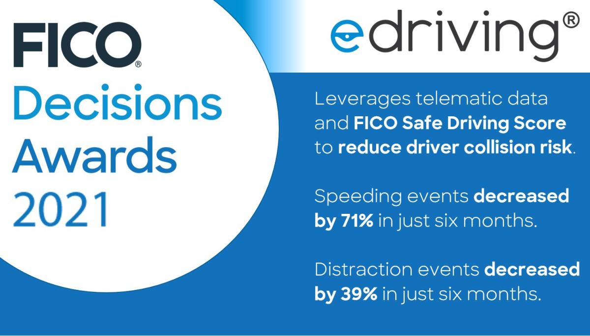 For its achievements, eDriving won a 2021 FICO® Decisions Award for decision management innovation.