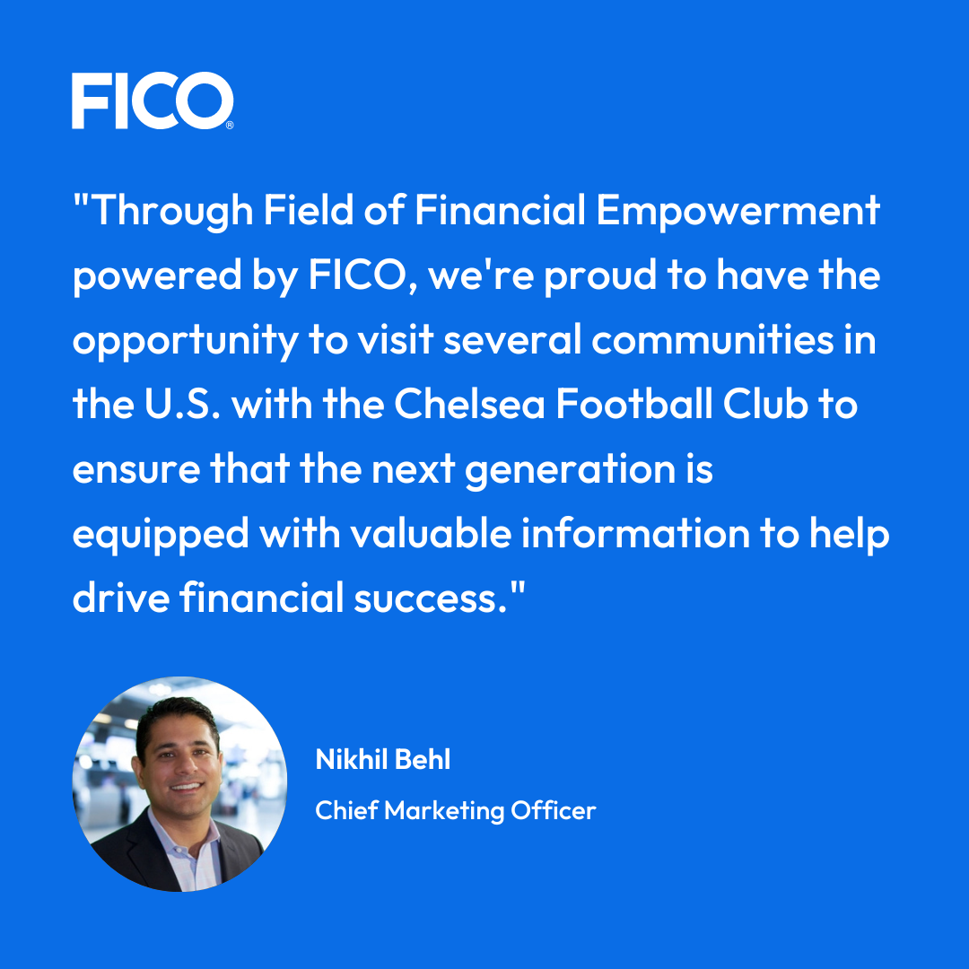 Through the Field of Financial Empowerment campaign, FICO and Chelsea will aim to raise financial literacy awareness and excitement for financial education across the United States. FICO will be holding “Score A Better Future Fundamentals” financial education workshops designed for high school students in the cities where Chelsea will be playing during the tour, including Chapel Hill, North Carolina; Atlanta, Georgia; and Chicago, Illinois. As well as taking part in a workshop in their home city, participants will also get the opportunity to watch the Blues in action in one of their pre-season tour fixtures.