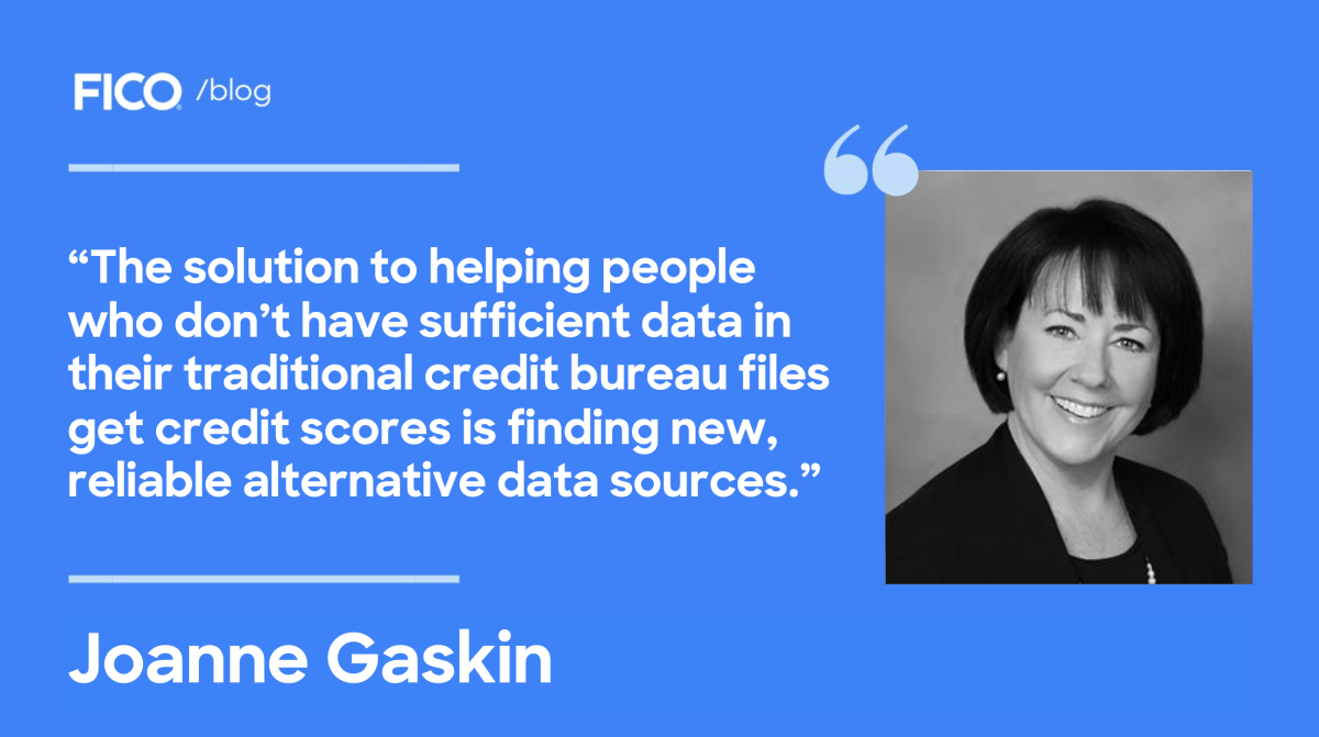 The solution to helping people who don’t have sufficient data in their traditional credit bureau files get credit scores is finding new, reliable alternative data sources. By augmenting traditional credit bureau data with such data, such as telecom, utilities, public record, and checking account data, we can provide predictive and reliable scores that lenders can use to responsibly expand access to credit. Models such as the UltraFICO® Score incorporate these alternative forms of data, to help score more potential borrowers and support their access to mainstream credit.