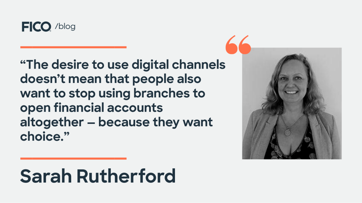 - The desire to use digital channels doesn’t mean that people also want to stop using branches to open financial accounts altogether — because they want choice.