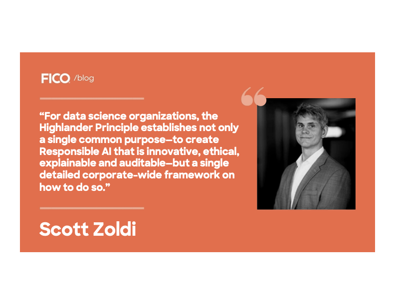 As the head of FICO’s data science organization, “There can be only one” has been a mantra of mine for a long time, too. It’s been a fixture in my talks about model development for years, and in June 2021 I wrote about the Highlander Principle in a blog about the importance of Auditable AI: