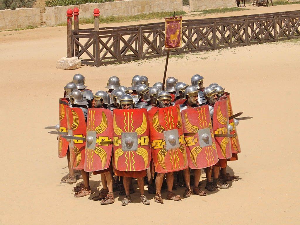 Upon hearing that order, troops immediately snapped into a concentric circle called the “Orbis Formation”: officers were in the center, surrounded by ring of archers, flanked by sword- and spear-wielding soldier legionaries who locked their shields together to repel any approaching enemy. All chariots, battle wagons, etc. were steered into a tight defensive circle around them, called a carrus castellum or wagon-fortress.