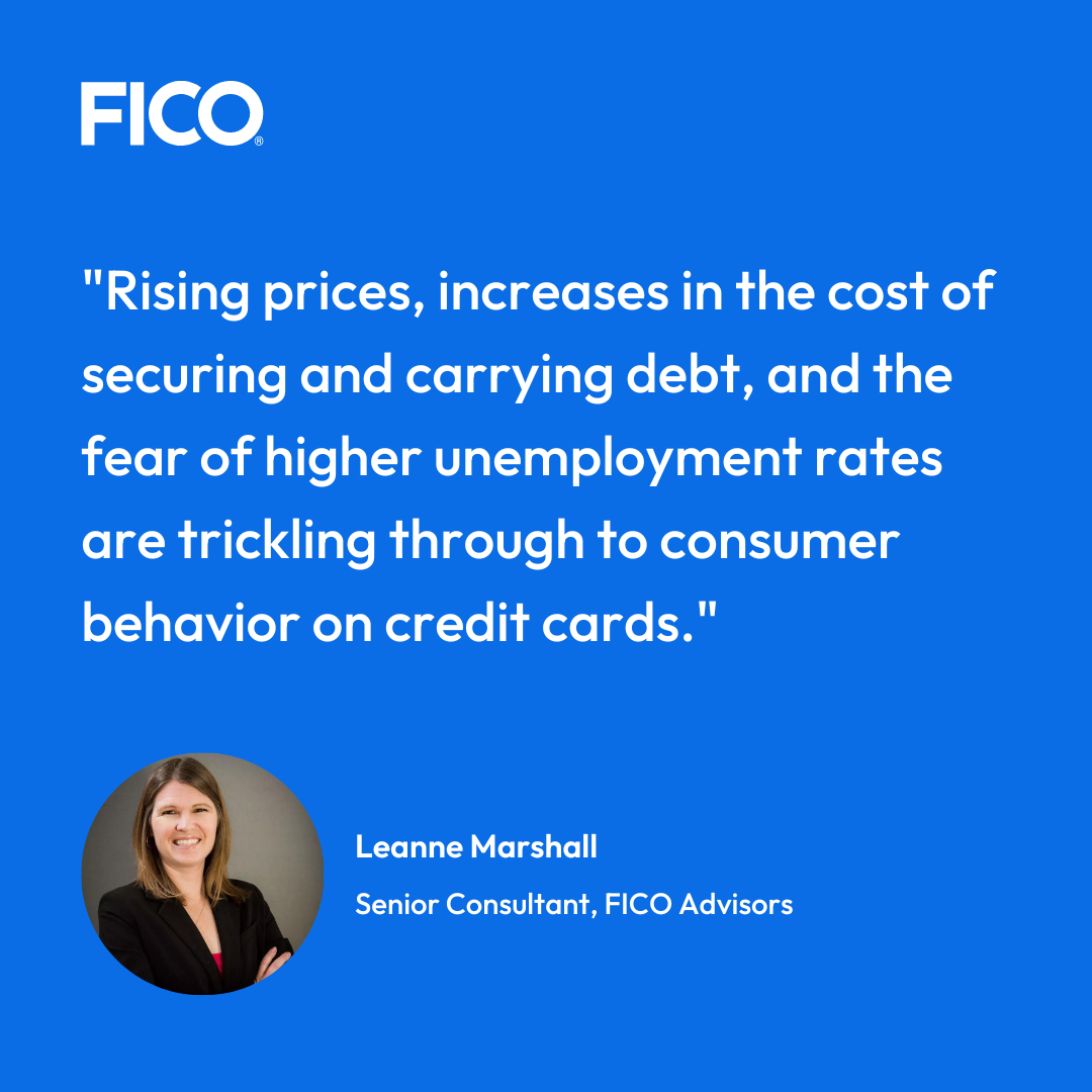 Looking ahead, 2023 could have some bumps in the road for consumers and those who are trying to manage risk in a credit card portfolio. If you are a consumer that is falling behind, you can reach out to your credit card issuer for help. Most companies offer short-term or long-term payment plans depending on the expected length of the hardship. Tools at myFICO.com are also available to help consumers track their credit usage and FICO® Score.