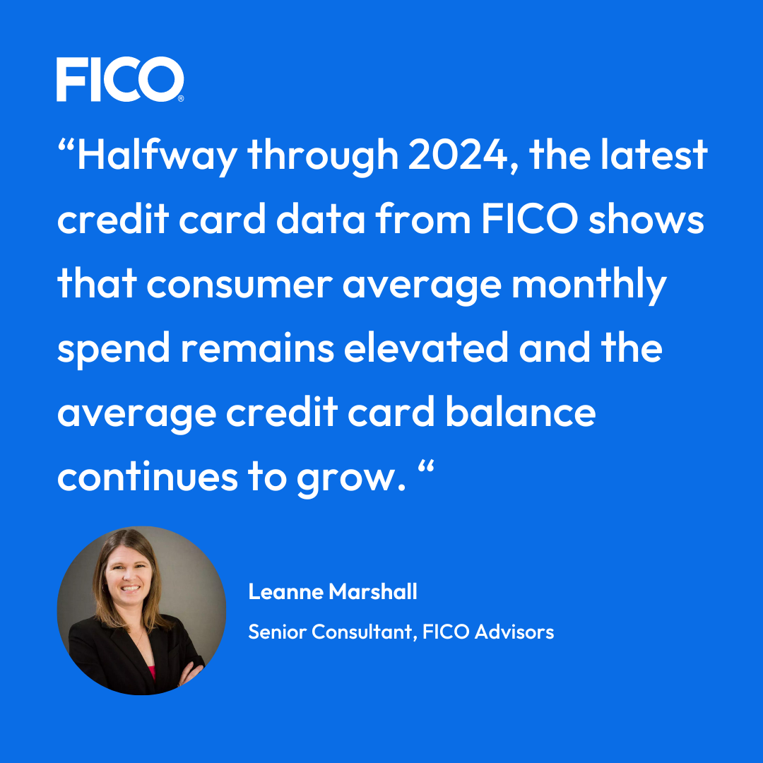 Halfway through 2024, the latest credit card data from FICO shows that consumer average monthly spend remains elevated and the average credit card balance continues to grow. The rate at which credit card balances are being paid back is still on the decline but the percentage of credit card accounts that have missed one payment has gone down year-over-year for the past two quarters. Here are the US Credit Card and Consumer Spending Highlights: