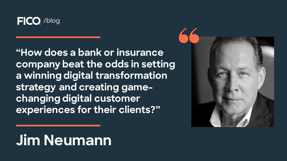 How does a bank or insurance company beat the odds in setting a winning digital transformation strategy and creating game-changing digital customer experiences for their clients? The journey begins with five steps, all facilitated by FICO Platform and its flagship solution, Enterprise Intelligence Network, which enable companies to leverage their applied intelligence and empowers them to achieve five incremental milestone toward digital transformation:
