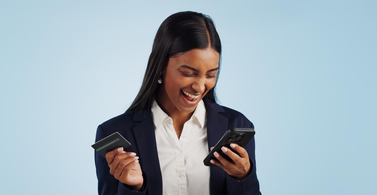 Woman with phone and card