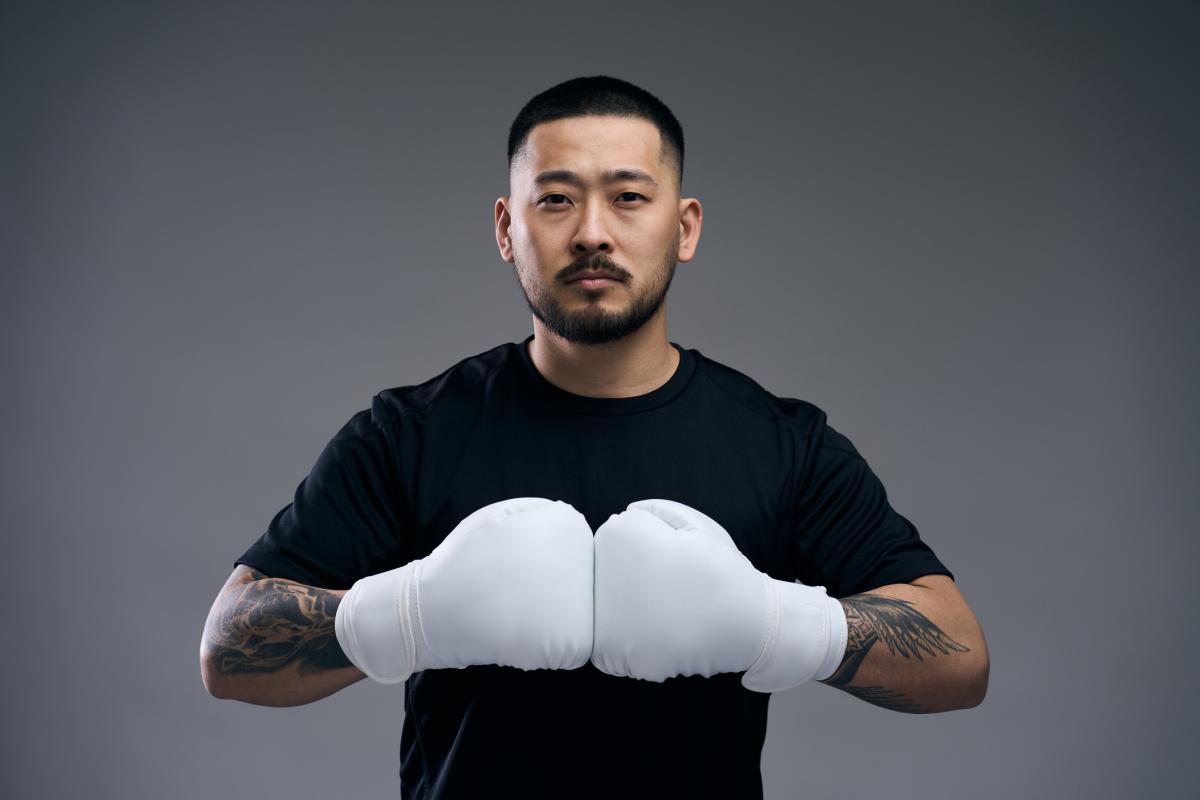 Asian man with boxing gloves