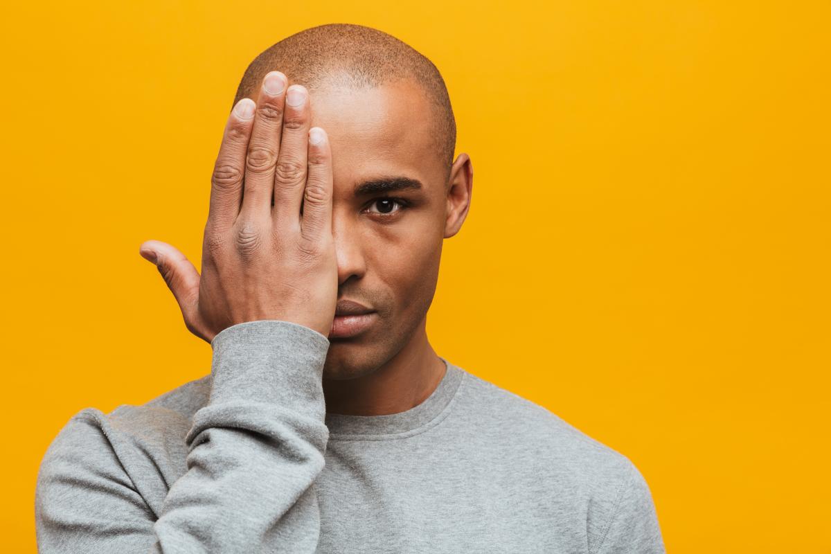 man covering half of face with hand