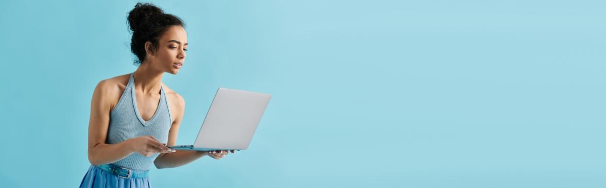 person smiling shopping on laptop computer