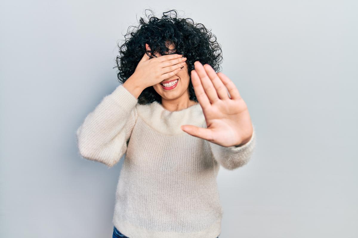 Woman with hand over face