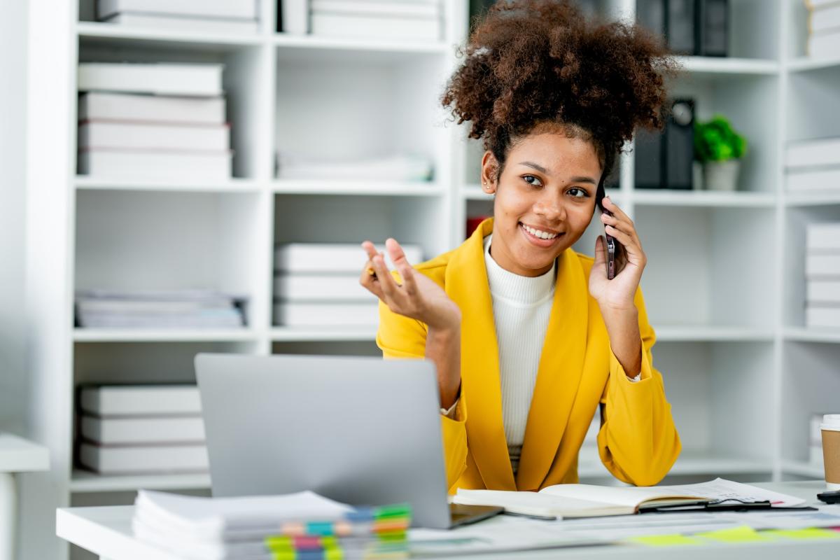 Woman with phone and laptop