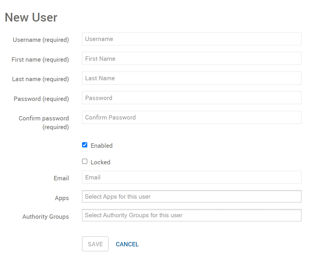 Authority groups ** This is a drop-down menu through which one or more authority groups can be selected. When an authority group is selected, it appears below the drop-down. Clicking the delete icon next to the authority group removes it from the list of selected authority groups and places it back into the list of selectable authority groups.