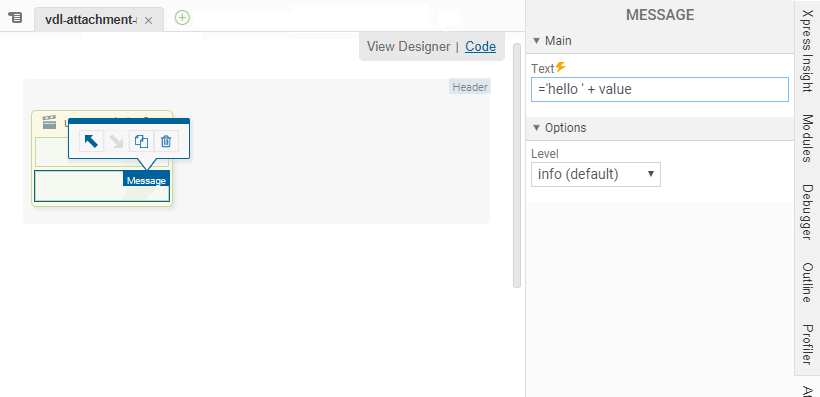 <vdl-action-message text="='hello ' + value"></vdl-action-message>