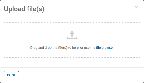 • To upload one or more files, drag the files onto the dialog box in the area that says, Drag files here to upload, or use the file browser. This works for Firefox, Chrome, and Microsoft Edge.