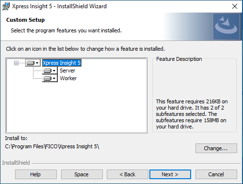 - Select Complete to install the Xpress Insight server and worker in the same location. Click Next to continue the installation.