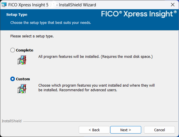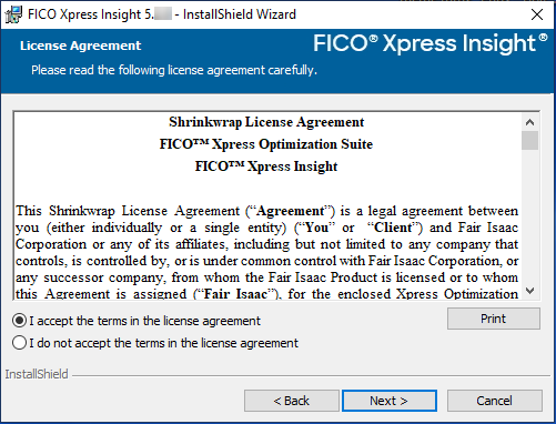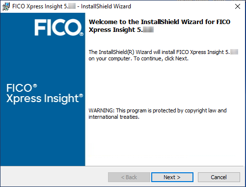- Download the Xpress Insight installer from the link provided by FICO and double-click the file to run it. After all the files have been extracted, click Next.