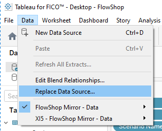 - Swap the data source with the replacement Insight MySQL data source you created using the "Replace Data Source" option from the Data menu.