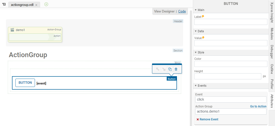 <button class="btn-primary" vdl-event="click:actions.demo1">Demo1</button>