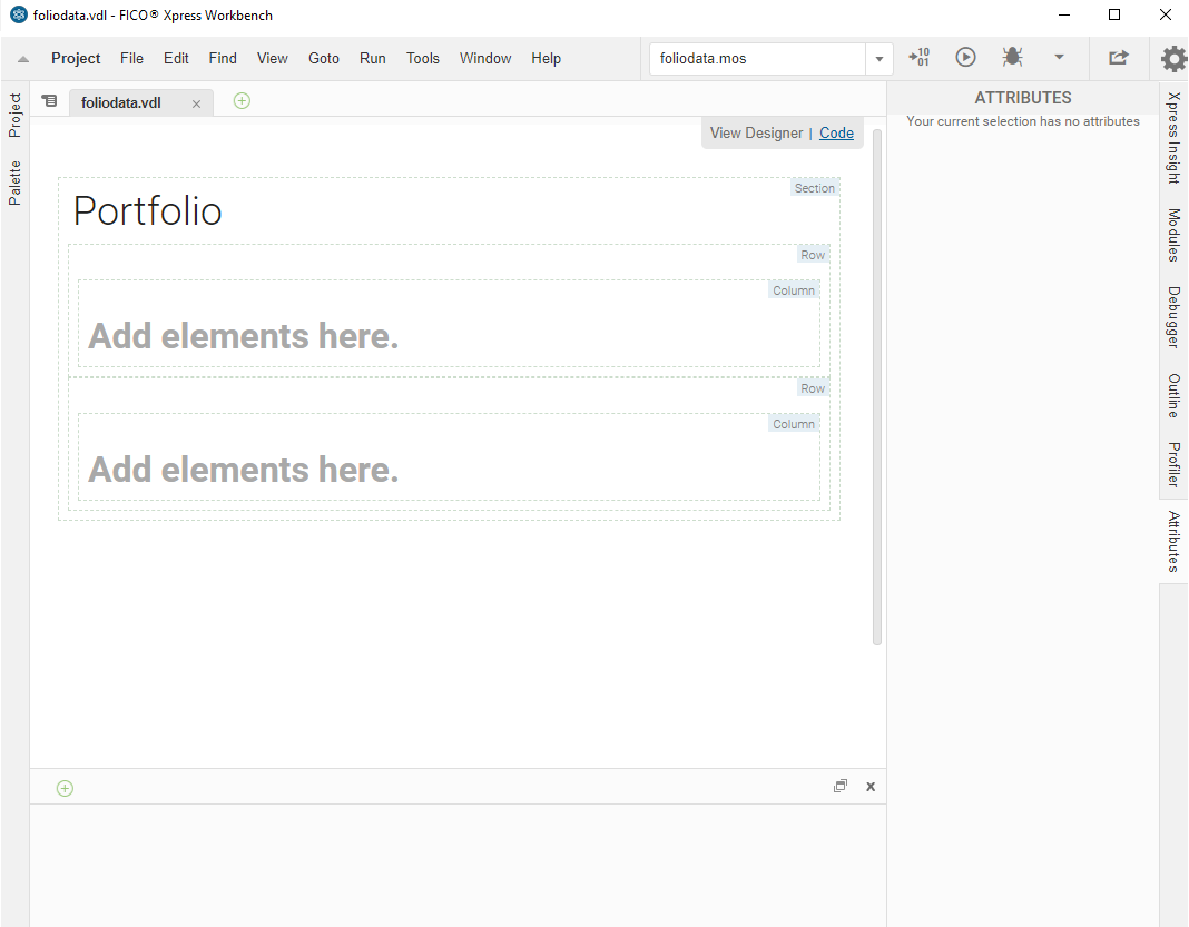 - In the first wizard page, enter the text "Portfolio" in the View Title field. This text is displayed as the view label by Xpress Insight and sets the default value for the Filename.
