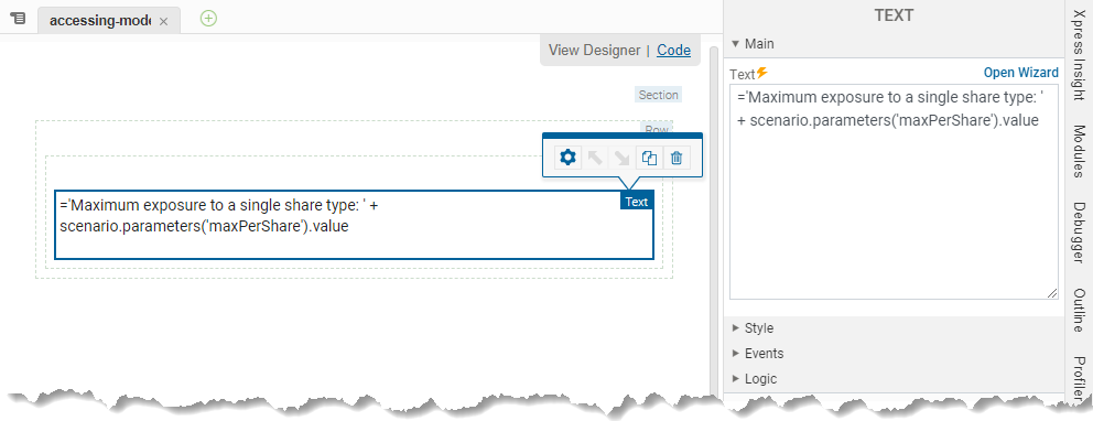 To return the Maximum investment per share from the example project, interrogate the scenario parameters to find the value associated with the parameter 'MAXVAL'.