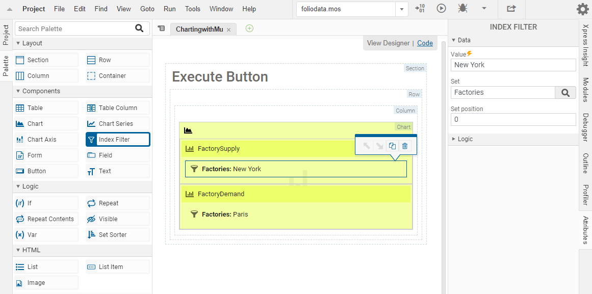 Use the vdl-index-filter element as a child of vdl-chart-series.