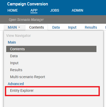 When the load function is executed (for example, when Load is selected on the Xpress Insight Scenario pill drop down menu), the entities declared as input data in the Python file (and any entities that are not declared) are loaded as input into the Xpress Insight database. For example, an entity declared in the load function as MyInteger: xi.types.Scalar(dtype=xi.integer, alias='My Integer', manage=xi.Manage.INPUT) will be loaded, because the last term in the declaration manage=xi.Manage.INPUT explicitly marks it as Insight input data.