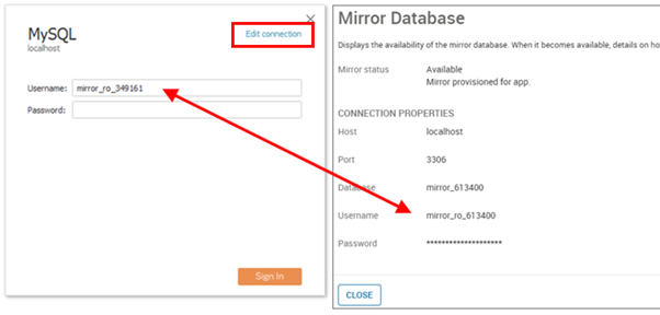 When developing a workbook the database host, port, schema name, username, and password that Tableau Desktop will use to connect to the Mirror database for the app must be supplied. These values, excluding the password, are then stored by Tableau Desktop within the workbook. Xpress Insight dynamically creates a Mirror database for each app. Therefore, the database connection values stored in the workbook itself are only applicable for the system the workbook was last authored against. An Insight system automatically overwrites these values when the app is deployed. Tableau Desktop cannot do this. If you wish to author an existing workbook that was not developed against your Insight development server then you will need to supply new connection values to Tableau Desktop.