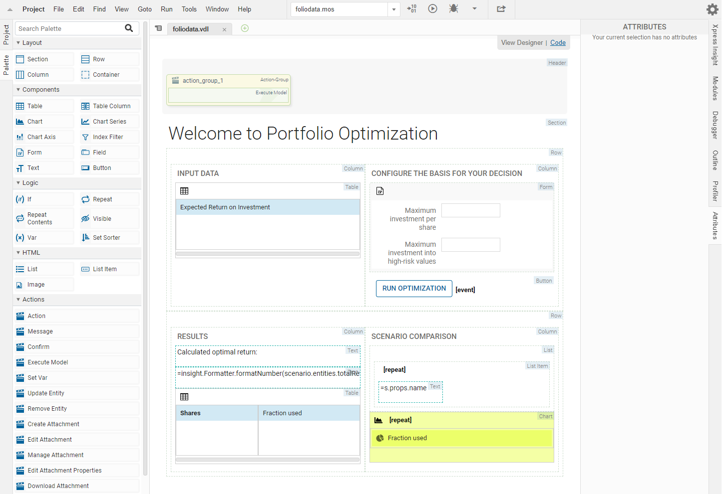 Note how the path attribute of the vdl-view element points to a file called foliodata.vdl—Xpress Insight searches for this file in the client_resources directory just below the app root. For more, see Introducing the Companion File.