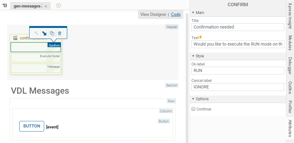 <vdl-action-confirm text="Would you like to execute the RUN mode on the model?"
