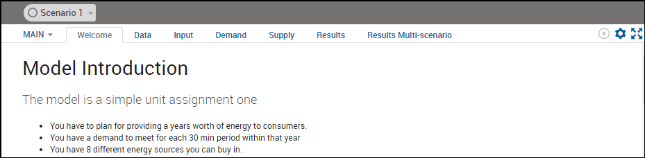 For example, click on the Input tab to view the scenario's input data.