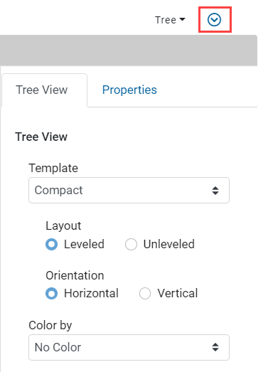 The TREE view contains a second options menu, available under the chevron icon.