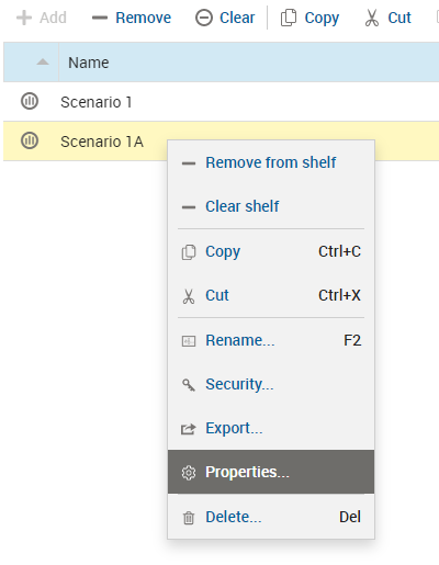 - In the items list, right click on Scenario 1A pill and select Properties from the drop-down list.