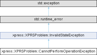 | Public Member Functions inherited from xpress::XPRSProblem::InvalidStateException | |
