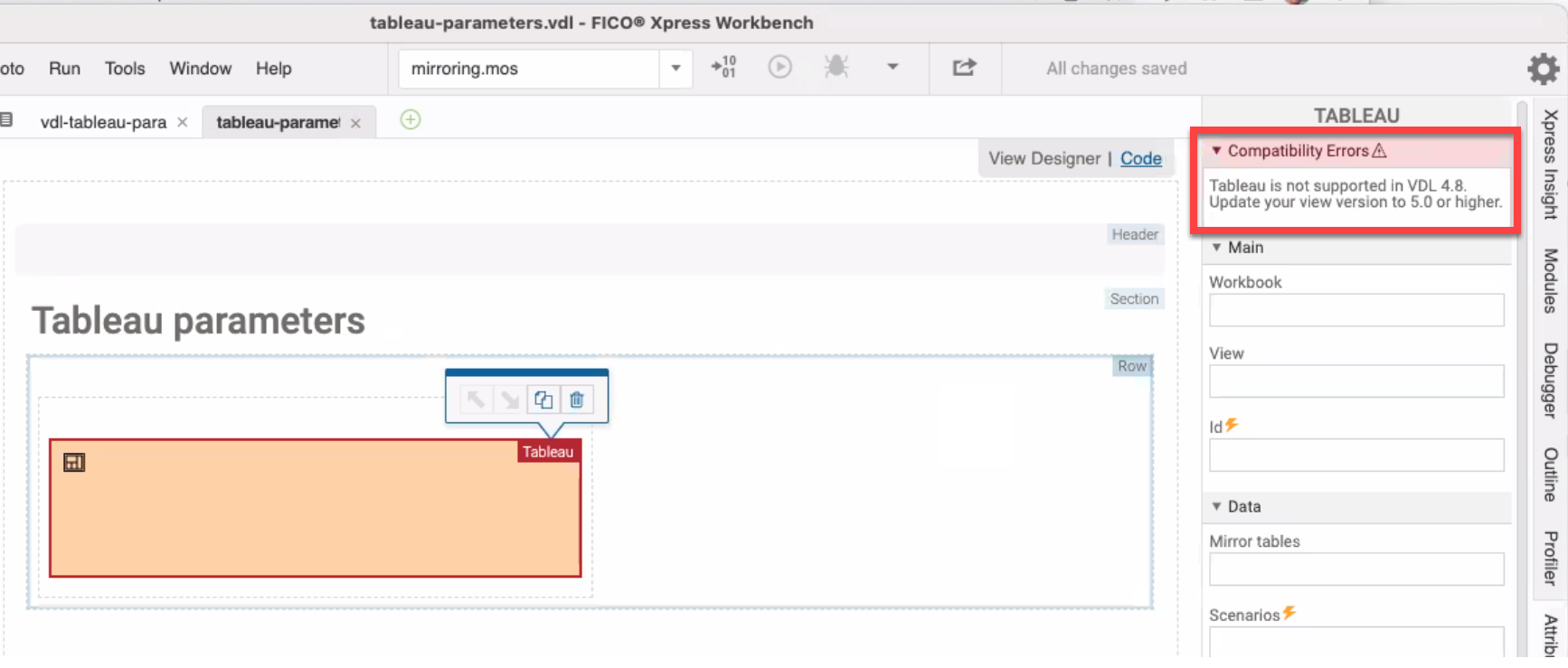 You can define either a major and minor version, for example <vdl version="5.1"> or a major version only, for example <vdl version="5">. In both cases, the Xpress Insight server provides the latest compatible minor version and always matches the major version. If no compatible minor version is available, an error message is shown when accessing the view.